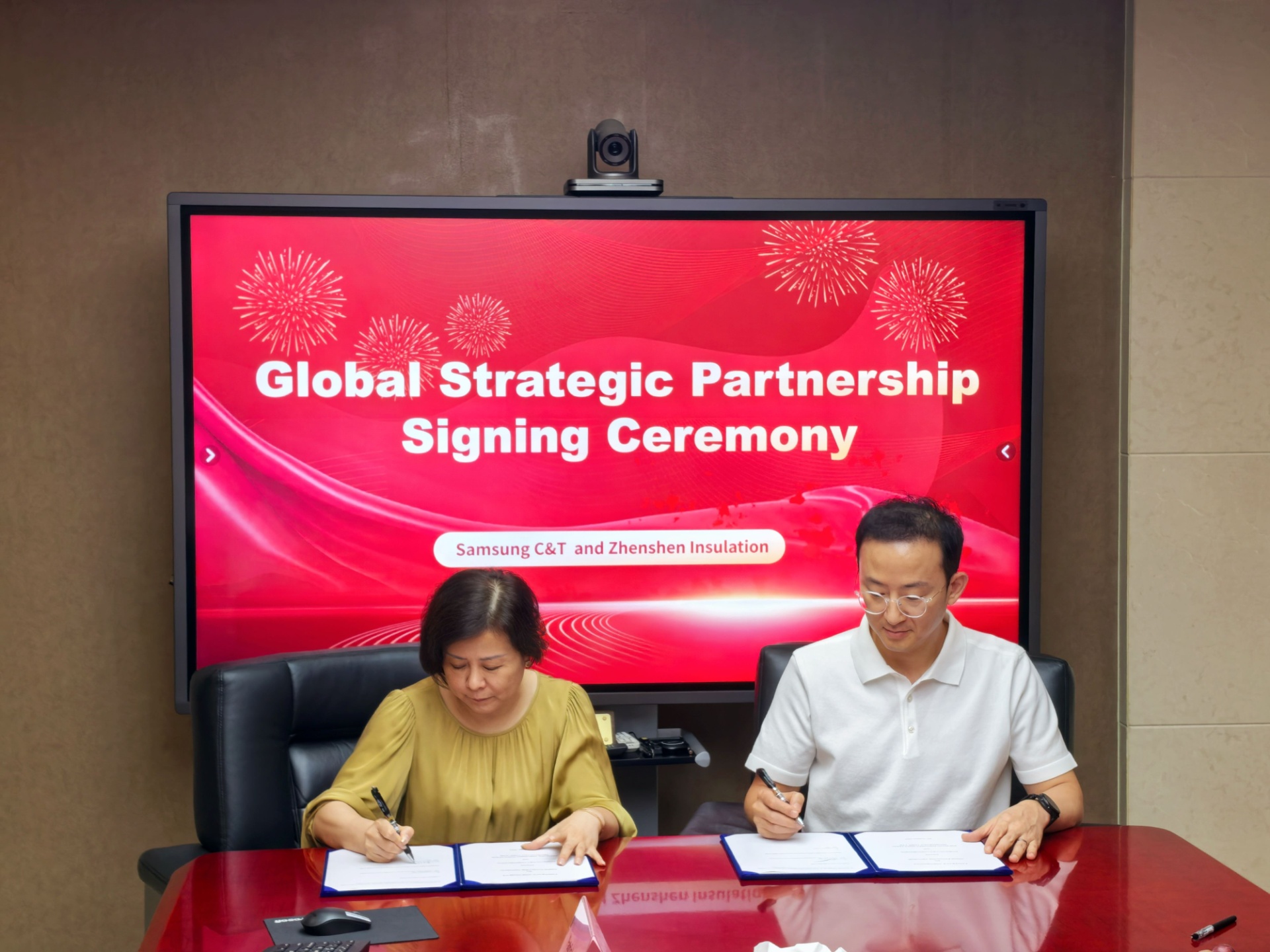 8月21日,三星物產集團領導Yongsub Park先生帶領團隊訪問了振申絕熱的總部,并簽訂了全球戰略合作協議。振申絕熱的董事長章雅琴女士和三星物產集團的領導Yongsub Park先生分別代表雙方簽約。